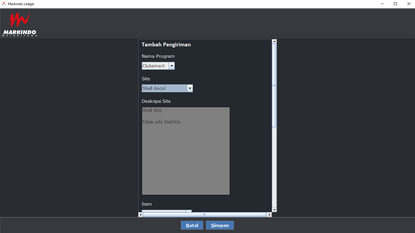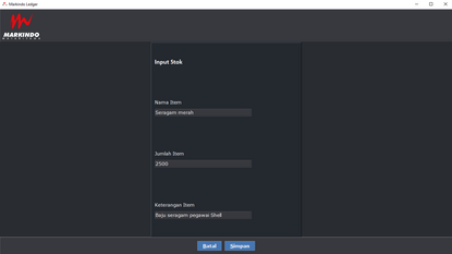 A ledger software for Markindo Mataritama company to keep track of their stocks and deliveries. Made with Java.